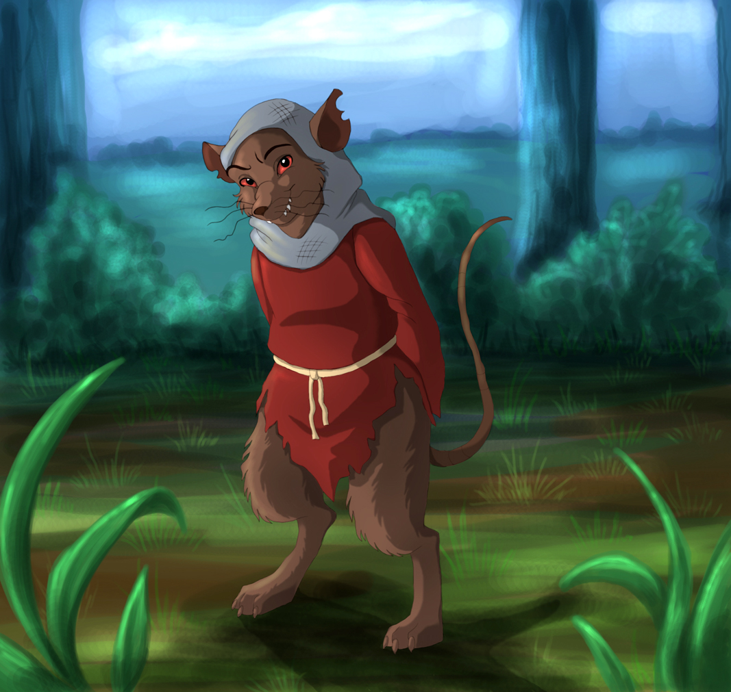 Свирепый Глаз был бывшим пиратом, поступившим на службу к Унгатт-Транну вместе со своим братом Рвущим Клыком. Как и большинство корабельных крыс, братья были по своей натуре тщеславными и жестокими. Свирепый Глаз был не таким умным, находчивым и красноречивым как его брат, но зато слыл отличным лучником, лучшим в Синих Ордах. Он и его брат быстро получили звания капитанов, или, вернее сказать, забрали звания (и форму) у капитанов Кошмарины и Фрола. Но вскоре также быстро лишились этих званий, чудом не лишившись головы. Унгатт-Транну приглянулись братья, и он поручил им организовать отряд по борьбе с Кородерами. Они устроили Кородерам ловушку, которая могла бы стать фатальной для крысиных врагов, если бы тем на выручку не подоспел лорд Броктри со своей армией. Позже, Свирепому Глазу было приказано застрелить лорда Броктри во время его поединка с Унгатт-Транном, если барсук начнет побеждать. Этот акт был расценен крысами как проявление слабости, и братья заключили союз с Карангулом на случай поражения Унгатт-Транна в поединке - они втроем собирались удрать и вернуться к пиратскому промыслу. Однако во время поединка план по убийству Броктри пошел не так: Свирепый Глаз промахнулся и попал стрелой барсуку в плечо, а не в голову. Второго шанса ему уже не представилось - Свирепого Глаза убил Груберт Глухой Ручей, быстро догадавшись о заговоре. (Пб) Свирепый Глаз