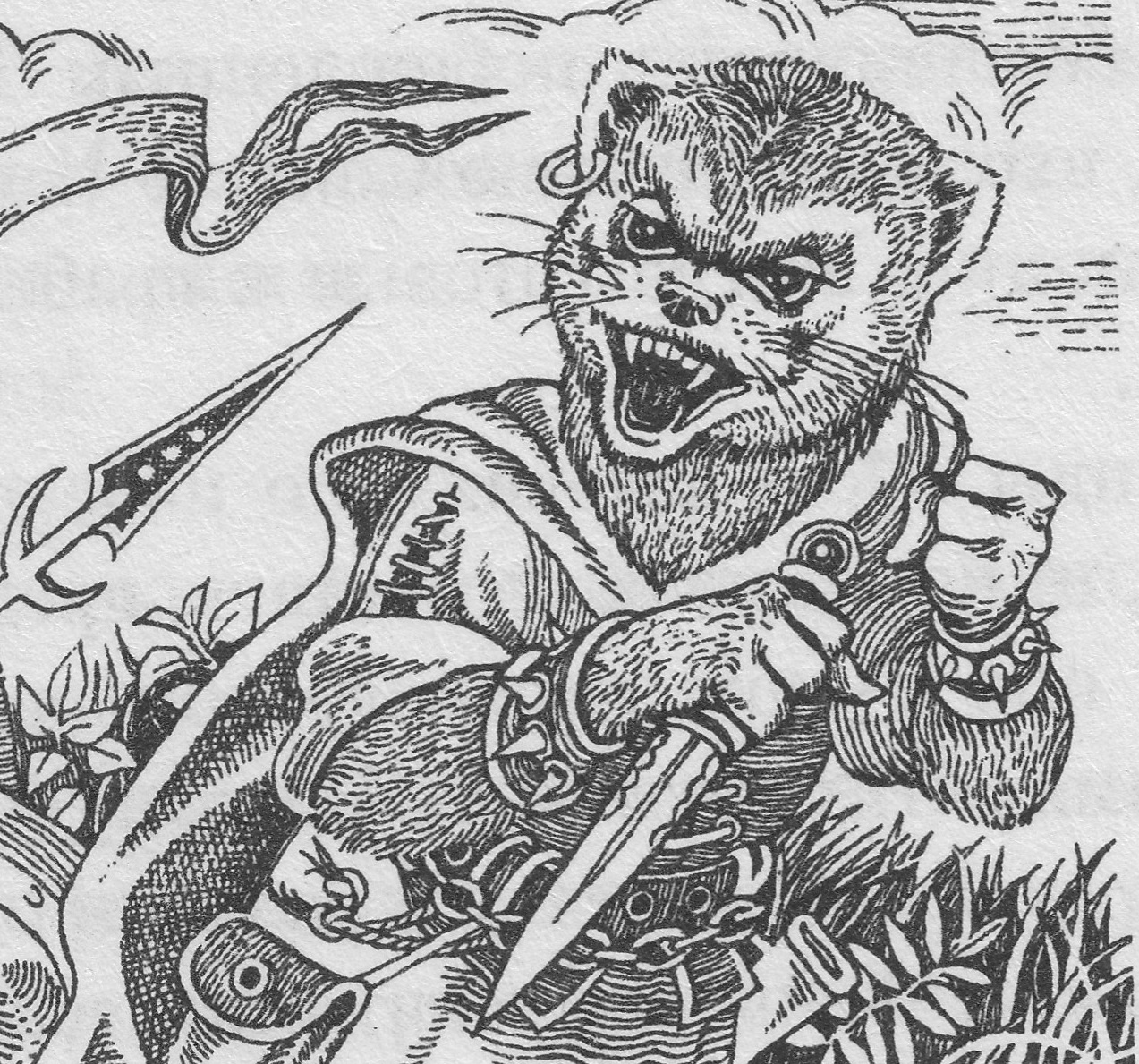Горностай из племени Юскарат. Участвовал в погоне за Тагерангом. После того, как Грувен Занн предал его и оставил помирать в болотах, Спиногрыз лишился рассудка. Позже присоединился к Юскабор. (ТиР) Спиногрыз