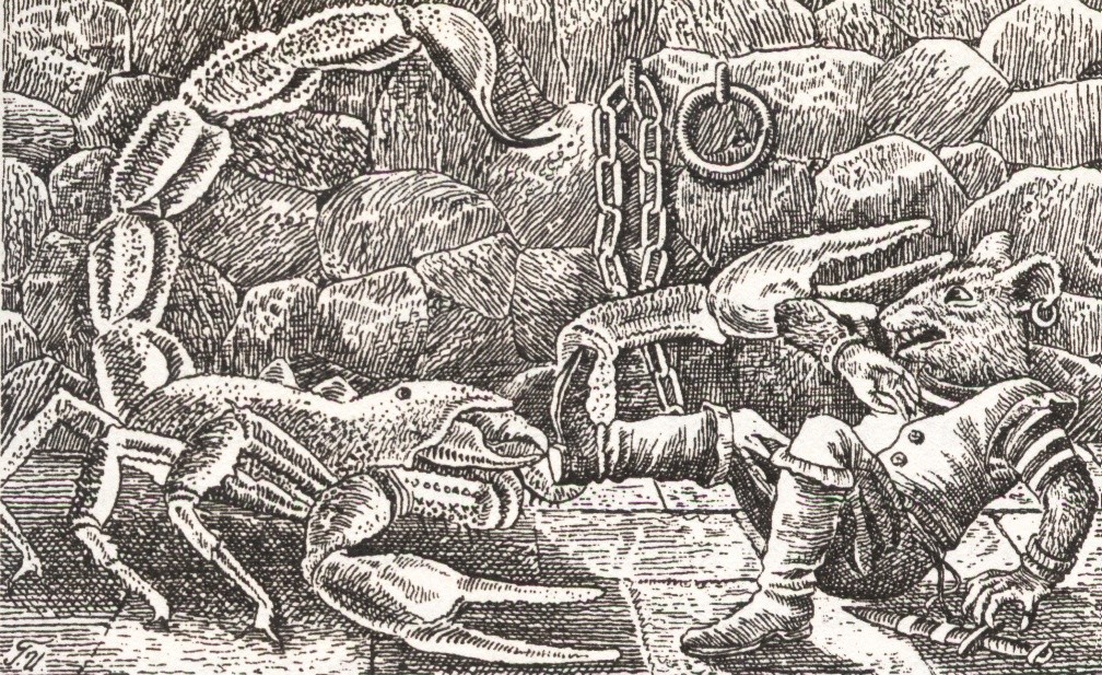 Скраббаг был неестественно крупным хищным скорпионом, которого Габул и Кривоглаз поймали на теплом острове посреди теплого моря и держали взаперти в подвалах Терраморта. Скраббаг ненавидел Габула и отчаянно хотел его убить. Но до того, как ему это удалось, он убил Флогга и Плешебока, которых бросил к нему в яму Габул. Когда форт Блейдгирт подвергся нападению сбежавших рабов, Ронблейда, Мэриел и остальных, Габул обманул Владыку-барсука и заманил его в яму Скраббага. Но благодаря духу Мартина Воителя Ронблейд вышел из оцепенения и сумел вышвырнуть скорпиона из ямы. Скраббаг попал прямо на Габула и убил его своим ядовитым жалом на хвосте. После этого скорпиона убил Дандин мечом Мартина Воителя, разрубив чудовище на части. (МиР) Скраббаг