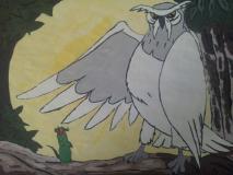 Большой филин с белыми перьями и золотыми глазами, живущий в Лесу Цветущих Мхов. Бэзил Олень спас ему однажды жизнь. Долгое время находился в ссоре с Джулианом Джиндживером, но в конечном итоге помирился с ним благодаря Матиаса. Проиграл пари с Матиасом и поклялся, что больше никогда не будет есть мышей и землероек. (ВР) Капитан Снег