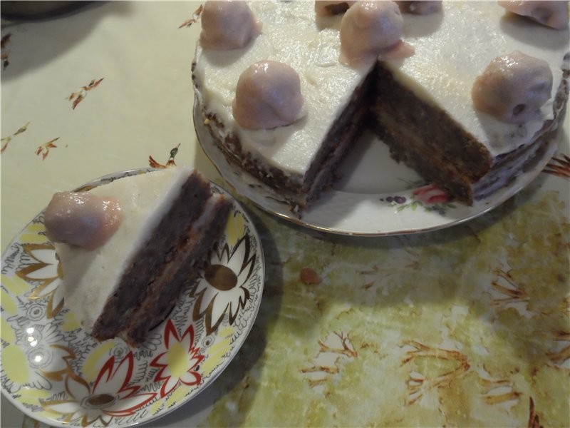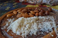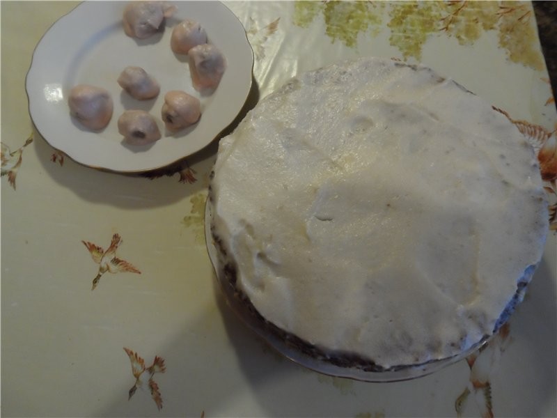 Состоит из трёх компонентов – крема, марципановых шариков и коржей. Рецепт специально разбит пропорционально на отдельные части, на случай если кому-то понадобиться больше или меньше того или иного. Некоторые компоненты, например мёд, сахар и вода встречаются несколько раз – не забудьте просуммировать.